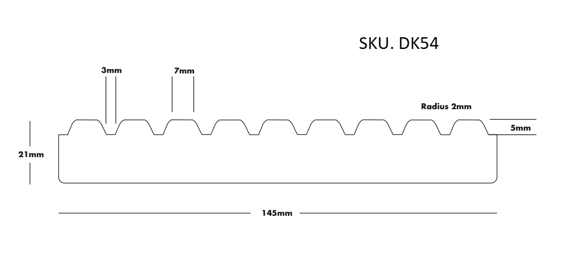 The nominal size of the deck boards is 150mm x 25mm, with a finished size of approximately 145mm x 21mm.