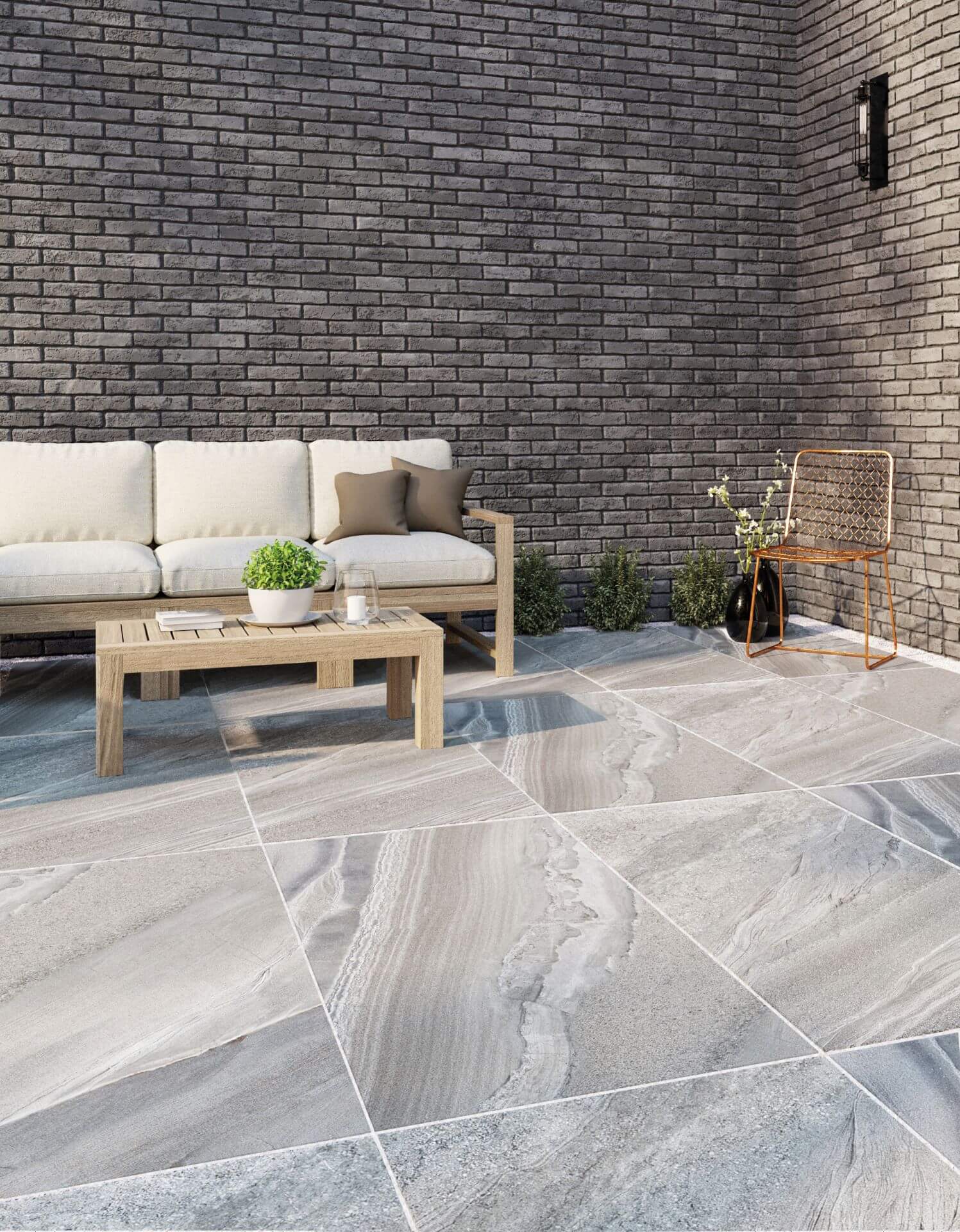 Quartzite is a modern porcelain paving with a fine textured finish. Its bold and distinctive appearance mimics the beauty of natural stone, a perfect choice to create a cool sophisticated area for entertaining or relaxing.