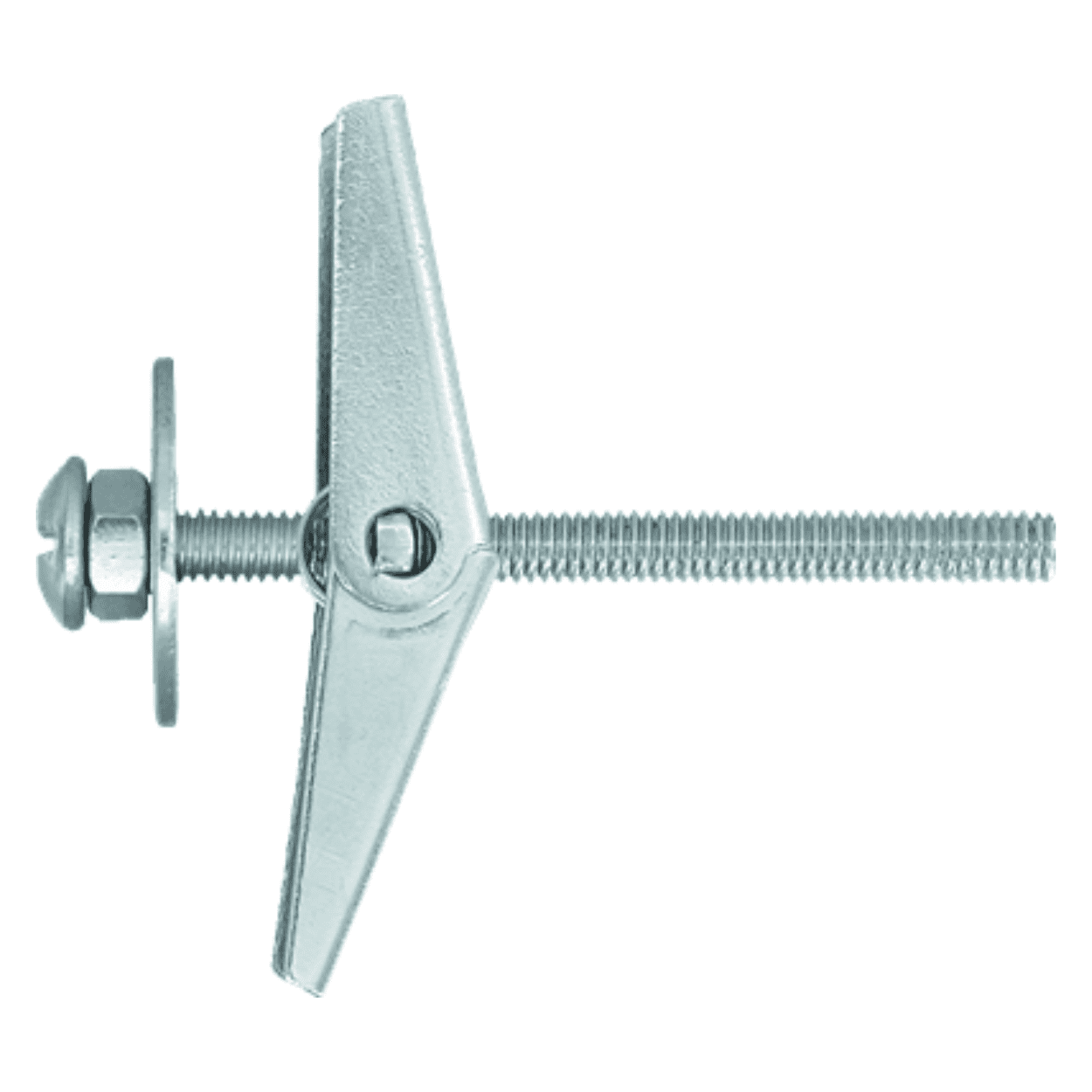 Long screw of the toggle fixing allows use in boards of various thicknesses and with thick attachments, offering maximum flexibility.