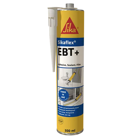 Sikaflex® EBT+ is a multi purpose, one part, elastic, polyurethane adhesive and sealant. It bonds to all common building materials, is permanently elastic and has excellent grab and gap filling properties making it ideal for use in a wide range of building and maintenance situations.